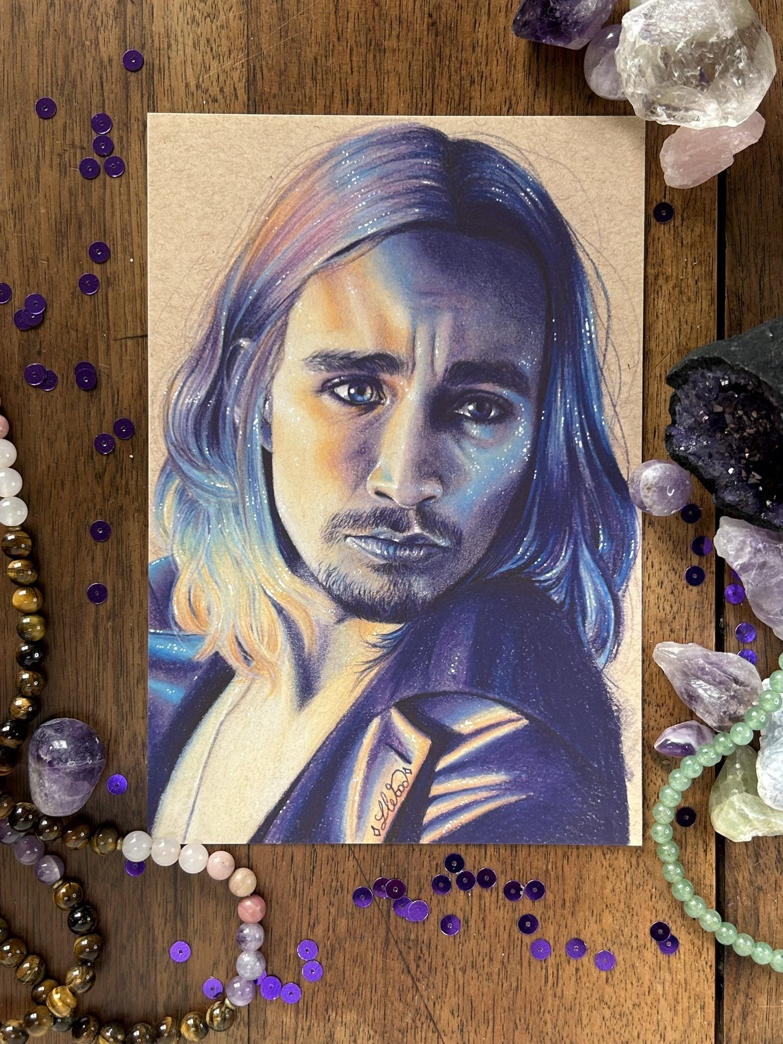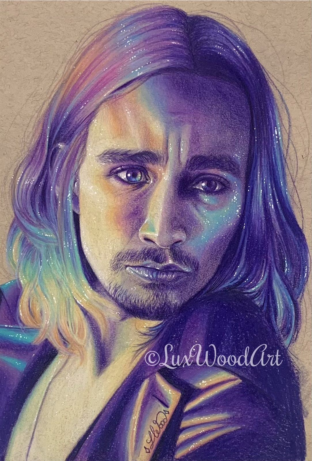 This portrait captures Robert Sheehan’s portrayal of Klaus Hargreeves in The Umbrella Academy Season 2. The reference photo depicts a poignant moment where Klaus, is starting to finally overcome his fears and trauma, and is finally able to listen and open up. He then shares a touching connection with his sibling. It’s a testament to his growth, resilience, and capacity for love.